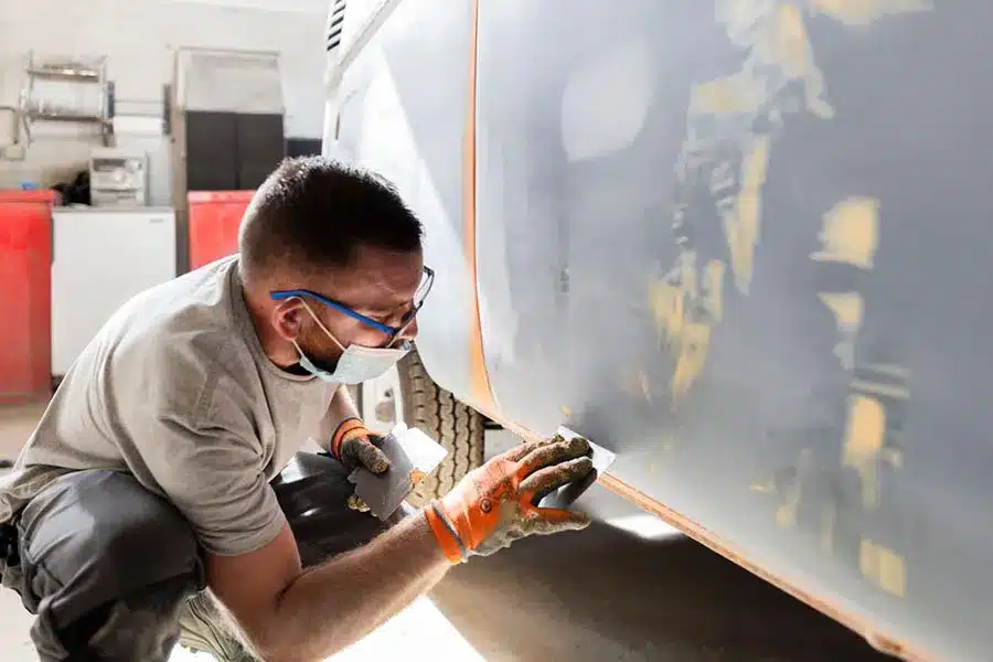 Le processus complet comprend plusieurs étapes bien maîtrisées par nos ouvriers : démontage de la mécanique si nécessaire, découpe et reproduction de la partie à refaire, mise en place, ponçage minutieux et repeinture de l’ensemble. Comme le rappelle bialekpeinture.fr, l’application du mastic est une étape fondamentale avant toute mise en peinture : elle permet de combler les imperfections et d’obtenir une surface parfaitement lisse et uniforme. C’est ce travail de préparation rigoureux qui garantit un résultat impeccable une fois la peinture appliquée.